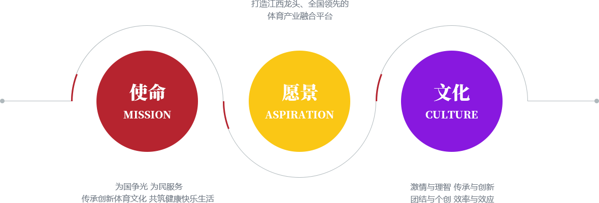 公司秉承“為國爭光 為民服務 傳承創新體育文化 共筑健康快樂生活”的企業使命,把社會效益和經濟效益相統一,以人民為中心,辦好人民喜愛的體育賽事,管好群眾身邊的體育場館,提供百姓需要的體育服務,不斷滿足人民美好生活需要。
